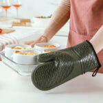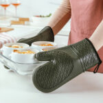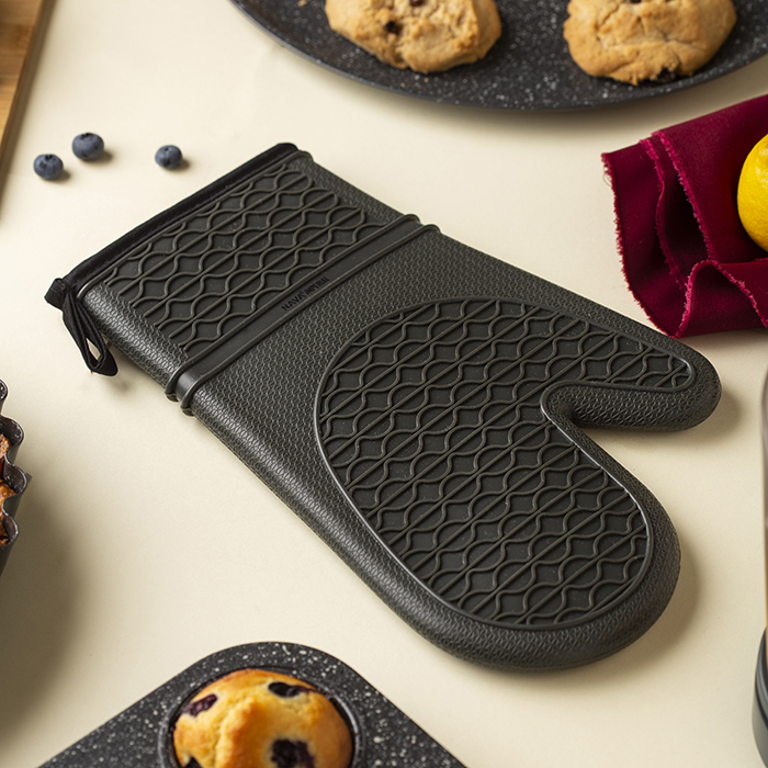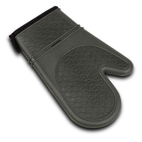 Με ειδική, ανάγλυφη, αντιολισθητική επιφάνεια, κατασκευασμένο εξωτερικά από μαλακή, εύκαμπτη σιλικόνη υψηλής ποιότητας, ανθεκτική στις υψηλές θερμοκρασίες και με ύφασμα στο εσωτερικό του. Με πρακτική θηλιά στην άκρη του για να το κρεμάτε.