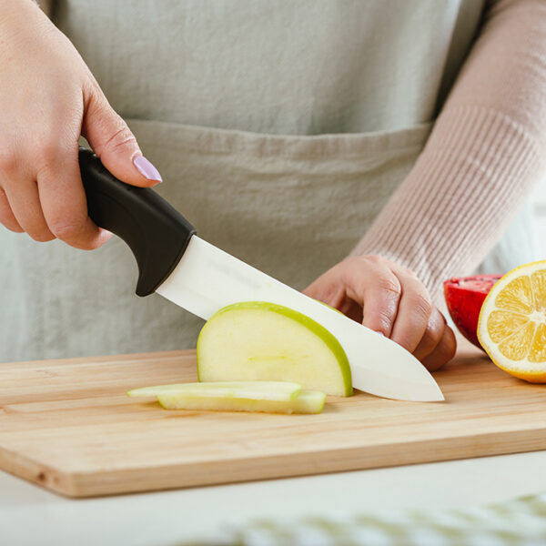 Με λεπίδα κατασκευασμένη από οξείδιο ζιρκονίου, ένα άκρως ανθεκτικό, μη πορώδες και μη τοξικό υλικό που δεν σκουριάζει. Με υψηλή σκληρότητα, η οποία εγγυάται μια αιχμηρή και ανθεκτική στον χρόνο λεπίδα. Χάρη στην απολύτως λεία, κεραμική λεπίδα τα τρόφιμα δεν οξειδώνονται και με αυτό τον τρόπο διατηρούν τις βιταμίνες τους και όλα τα θρεπτικά συστατικά τους αναλλοίωτα, δεν μαυρίζουν και δεν αλλοιώνεται η γεύση ή το άρωμά τους.
