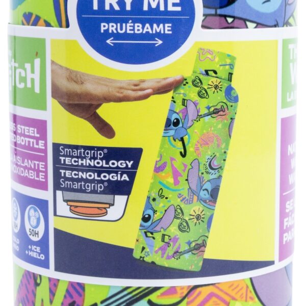 Insulated stainless steel bottle with the anti-tipper Smartgrip system that gets attached to any plain superface. Smartgrip does not allow the mug to tip, yet it can be easily picked up in any moment. Decorated with original designs of some of the most well-known characters of the world of TV shows and movies. A practical and functional product that never goes out of date.